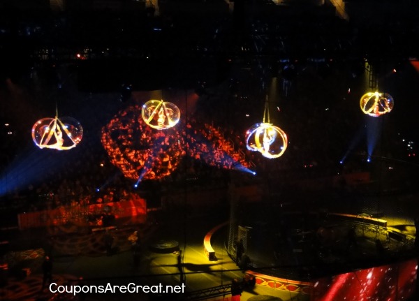 If you are planning on attending the circus and you don’t want to spend a ton of money out of pocket while you are there be sure to eat before hand (the show is approximately 2 hours and 20 minutes with a 15 minute intermission) to avoid purchasing venue food. Souvenirs are definitely expensive. Our family always stops at The Dollar Store to get glow necklaces and wands for only $1.00 each instead of the exorbitant prices at the event. That has worked well for us so far.