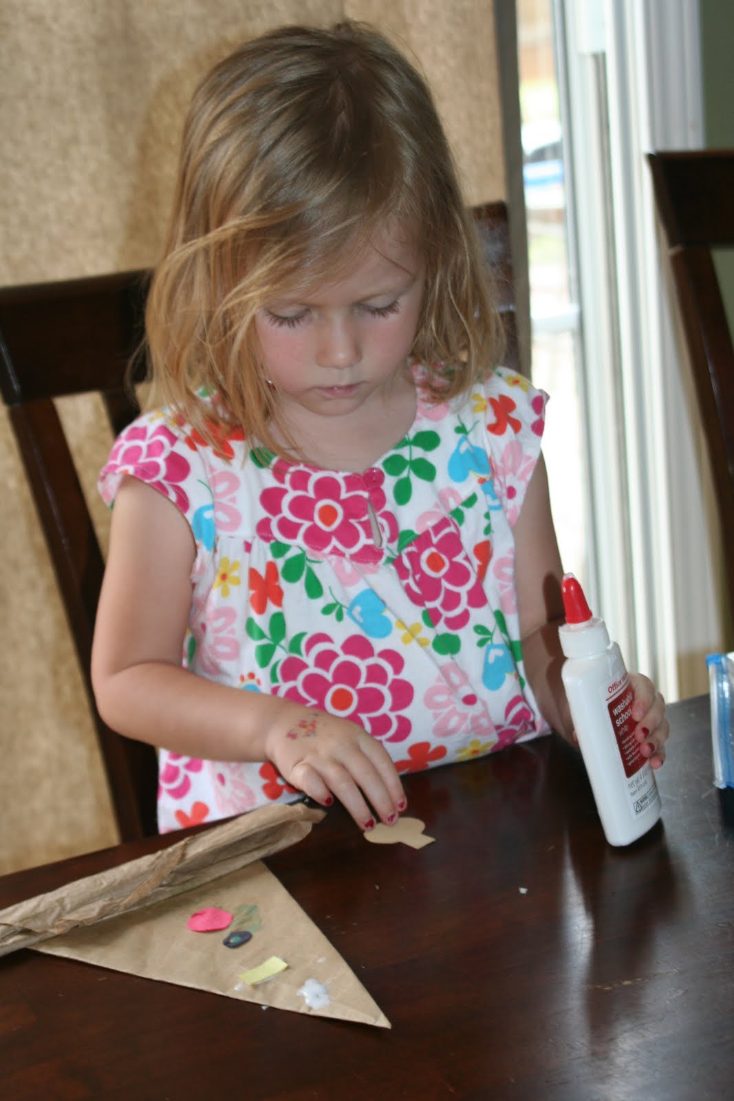 A few days later while I was making dinner the girls sat at the table and made their pizzas. I didn’t need to help them at all. Each girl had her pizza, a pile of toppings, and some glue. We have had a lot of pretend picnics with our pizza already!