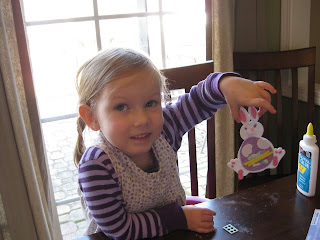 Spring is such a fun time of year! I love spring crafts. Yesterday the girls and I made two crafts – Shamrocks and Bunnies. The Bunnies were from a kit that we paid $1.79 for at Joann’s. The Shamrocks are from some felt we had at home, a magnetic felt sheet, and some glitter glue which were purchased at JoAnns. I think it is fun to highlight a store bought craft as well as a homemade craft.