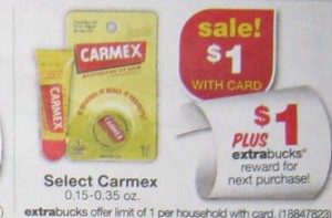 Select Carmex (0.15-0.35 oz), $1 – Receive $1 Extra Care Buck