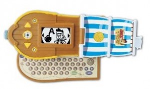 The VTech Smart Ship Learn and Go featuring Jake and the Never Land Pirates allows your child to sail away and learn with Jake and his crew. When this educational toy is open, your child can play seven different learning games that teach words, basic math, shapes and more. When closed, you can help Jake and his crew sail across the seas with two different games. With its Qwerty keyboard, game buttons, and pirate rock music, your child will love to play with this interactive learning ship.