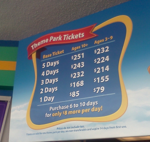 To purchase these tickets we headed to Shades of Green, which is a military resort on Disney World property. We threw my brother out of the car at 6:58 and the office closed at 7:00. Luckily they are incredibly nice and gave him a number (#33 – they were only on #11) and served him that night. We were all pleasantly surprised that sales tax was NOT charged on the tickets. It has to do with being a military establishment (don’t yell at me since I know that is not exactly correct, but that answer works well enough for this blog post).