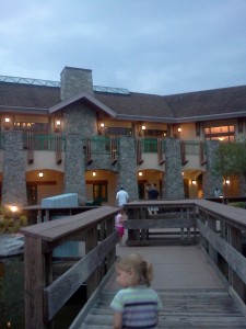 We considered staying at Shades of Green, but chose to stay off property (more later). During our time at Shades of Green we ate dinner (buffet style with a kid’s section – GENIUS!), looked at the most giant goldfish ever, raced boats, and took pictures with patriotic Mickey Mouse. Although we didn’t lodge with Shades of Green, we would definitely stay there next time (assuming my brother was with us).