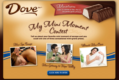 DOVE® Ice Cream Miniatures has launched the “My Mini Moment” contest. The “My Mini Moment” contest celebrates these cherished me moments. DOVE® Ice Cream is asking women to share their favorite mini moment of escape and one lucky winner could win one of 3 sensational mini-grand prizes: a mini-getaway to Napa Valley, Spa services for a year or a mini-home makeover. Women need to submit a photo and short essay at DoveIceCream.com/myminimoment by June 7, 2010.