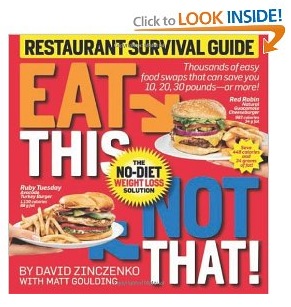 Have you seen the morning news shows when they have food side by side and they tell you which food is better to eat? The book Eat This Not That! Restaurant Survival Guide: The No-Diet Weight Loss Solution is a great resource to help narrow down the choices when eating out. The $8 price tag (60% savings) at Amazon is approximately the cost of eating out one time. So go ahead and get this book so you know which choices you should be making when eating out!