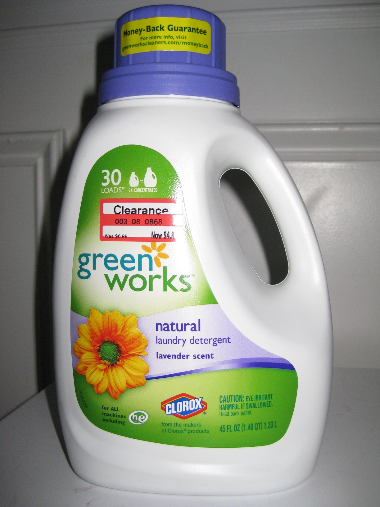 There is a $3/1 Target coupon here that you can stack to hopefully get some really cheap Green Works detergent. I went to Target this morning and found the detergent above for $4.88. It was too small to use the Target coupon on, so I paid $1.88 for 30 loads, or 6¢ per load! Check all the end caps at your Targets because those bottles of detergent are hidden in different places throughout the store.