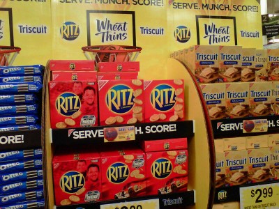 A huge display that had tearpads for “Save $1.00 when you buy 2 Nabisco Cracker Products (5.5 oz to 16.5 oz) which expire 05/01/11