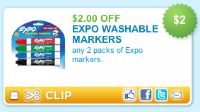 There is a rare Expo Washable Markers coupon available right now!  To find it quickly click “Office Supplies” and it should be one of the first coupons you see.