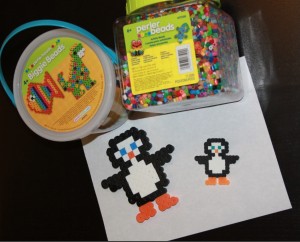The girls and I were using Perler beads throughout the week and I made two penguin perler beads just for fun. These little guys make me smile. If you have a 3-4 year old and you want to try Perler beads with them but think they are too small then you are probably correct. Get the Biggie Beads which are the perfect size for little hands!