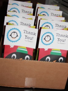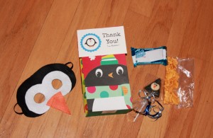 The goodie bags we put together for the kids contained Penguin Cookie Pops, r”ICE” Crispies, Penguin-type Goldfish crackers (from Aldi), and a penguin mask. The good bag itself was from Target’s Christmas clearance. Using PicMonkey I created a cute little tag to staple onto the front of the bag.