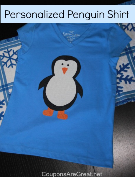 What would a birthday party be without a cute shirt for the birthday girl to wear? Using the same methodology from the Put a Number on it!: Custom Birthday Shirts Tutorial my mother-in-law and I created a Penguin Shirt. She is very crafty and drew the penguin pattern and I used the Heat ‘n Bond to adhere the fabric to the shirt. I love that stuff!!!