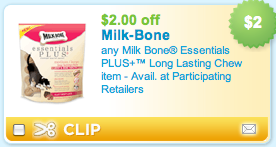 This is a great week for PetSmart PetsPerks members. Coupons.com has a $2/1 Milk-Bone Essentials coupon to use with the $2 sale at PetSmart. This means {free} doggy treats for your favorite four legged pal! To find the coupon quickly, click on Pet Care on the left-hand column. Remember that you can print this coupon twice per computer!