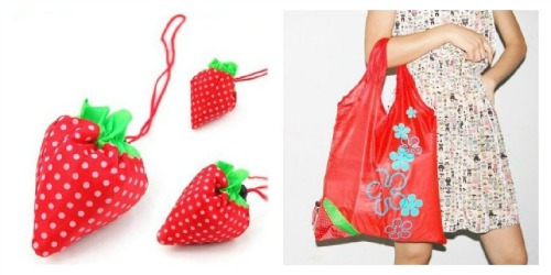 This Strawberry Fold up Reusable Compact Eco Shopping Bag for $1.20 shipped! Can you believe (a) how cute it is and(b) the price? The reusable bags at the checkout line at the grocery store are all priced around $1.00. For twenty cents more you get cute, compact, and mailed to you!
