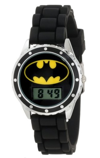 Batman Kids’ BAT4045 Black Rubber Strap With Batman Logo Face Watch: $9.99