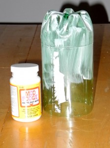 3. Cover the bottom and part of the sides with Mod Podge. Try to not go past the half-way point because it will make the ghost look less “flowy”.