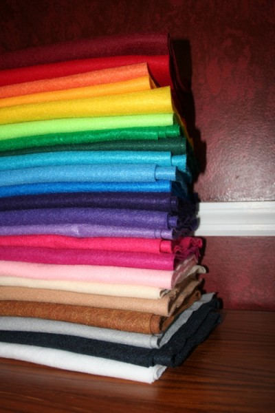 My plan for that remnant is to make a felt board for story telling and learning fun so I stocked up on lots of other colors of felt as well. Individual felt sheets (9″x12″) are on sale this week at Jo-Ann stores for $0.25 (reg. $0.34) and at Michaels stores for $0.20 (reg. $0.29). Felt by the yard is even cheaper if you expect to use a lot. The bolts of craft felt at Jo-Ann stores are 72″ wide and on sale for $2.99 per yard. A quarter yard (nine inches) costs $0.75 and is like buying six standard sheets at $0.13 per sheet. If that’s too much of a given color for you, you can easily cut it in half to split with a friend.