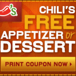 Chili’s: Free Appetizer or Dessert Coupon (With Purchase of Entree)