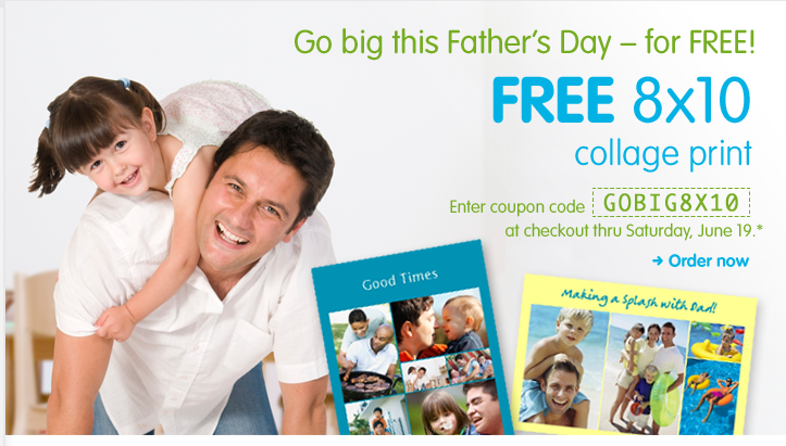Go BIG this Father’s Day with a {free} 8×10 photo from Walgreens. Now through Saturday June 19 enter code GOBIG8x10 at checkout for your free collage print.