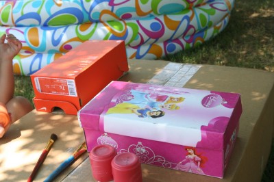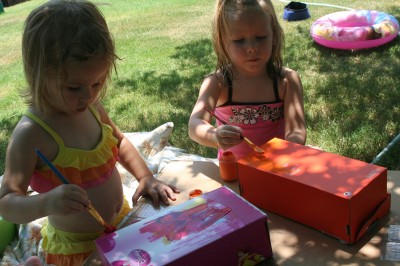 I attempted to make Shoe Box Mailboxes with the girls today. We painted outside on a big box and that part of the craft was easy and fun. Then it was nap time. My older daughter is transitioning out of naps and some days she wakes up grump-y! Today was that day. While I was cutting out the square hole she had an absolute melt down. So, this craft is TBC – To Be Continued!