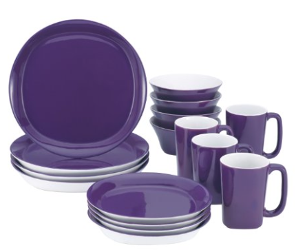 Are you in need of a new dinnerware set?  Between old age and kids it seems like the time has come for an upgrade.  Head to Amazon and grab the purple Rachael Ray Dinnerware Round and Square 16-Piece Dinnerware Set for only $31.99. There are several color selections that are $49.92.