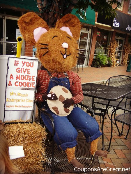 To leave you with another year’s scarecrow that is also one of my all time favorites….here is If You Give a Mouse A Cookie.  We made this If You Give a Mouse a Cookie craft a year before we saw the scarecrow.